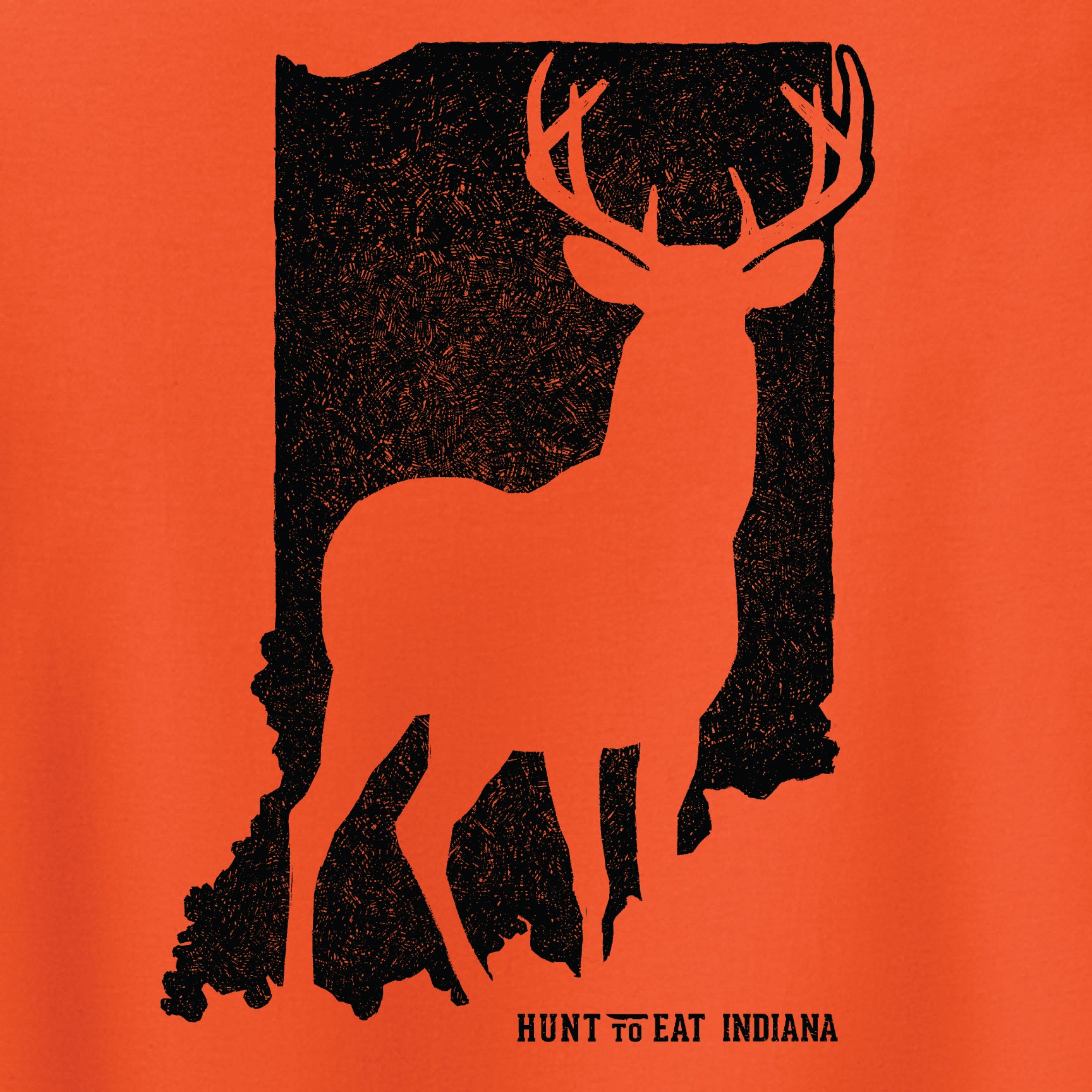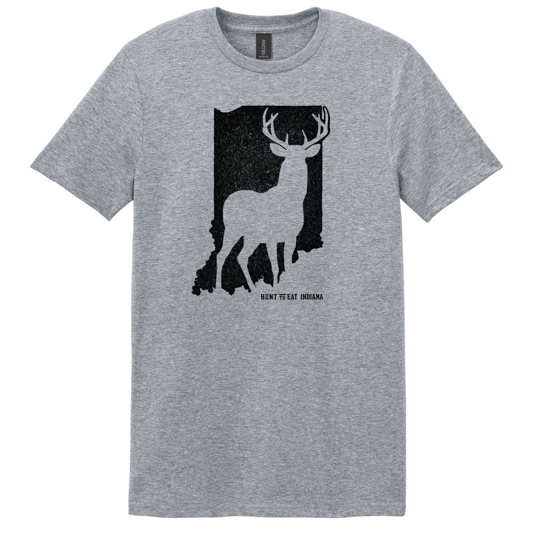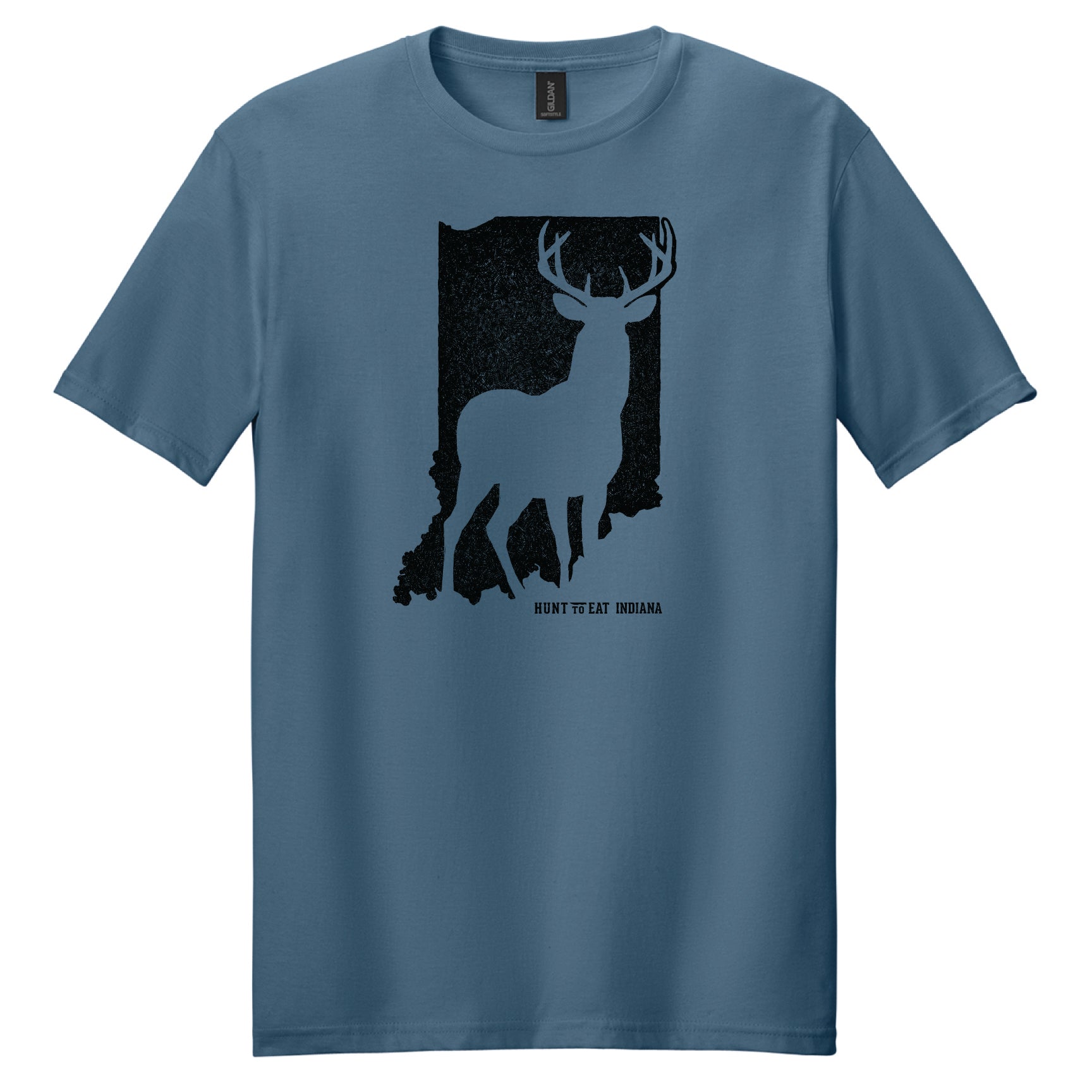 Rep the state of Indiana and your love of whitetail deer hunting with this T-shirt. Available in four different colors; Military Green, Indigo, Orange, and Sport Grey.