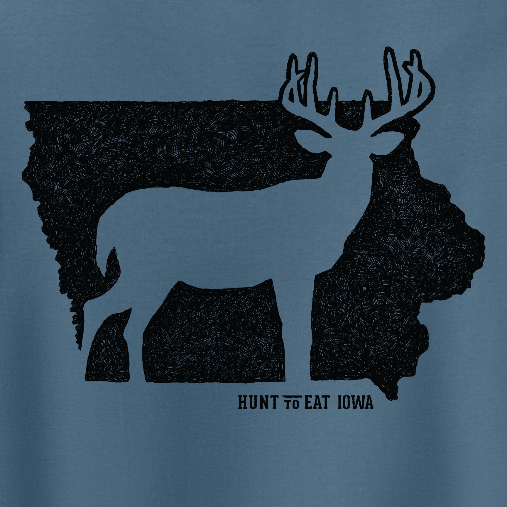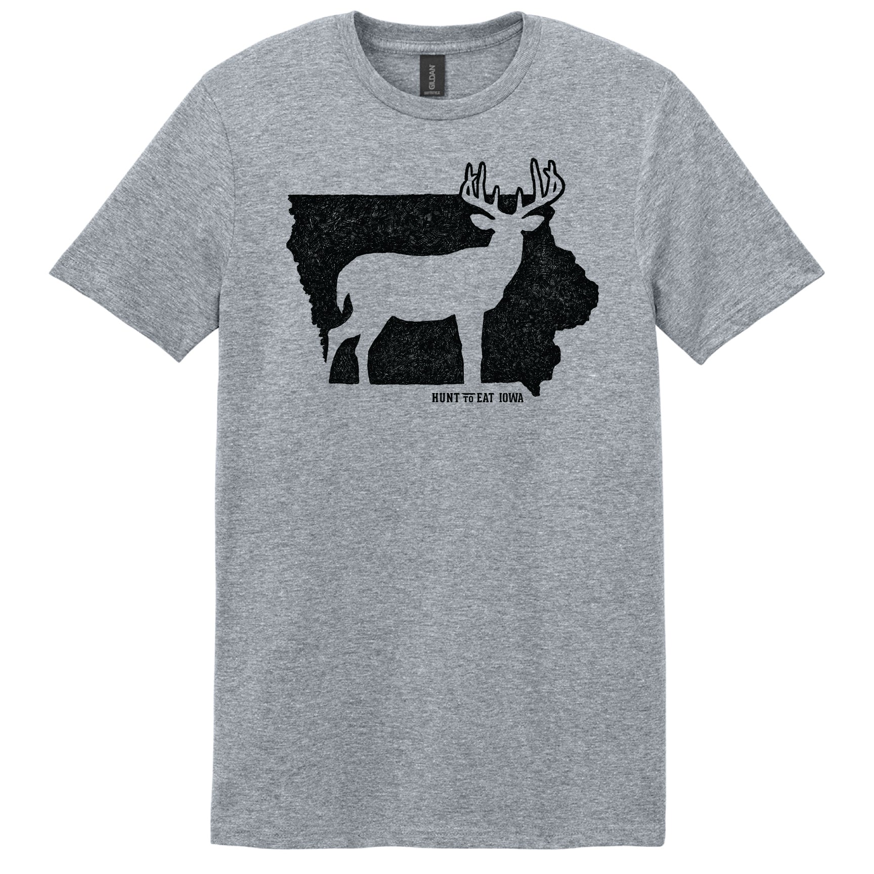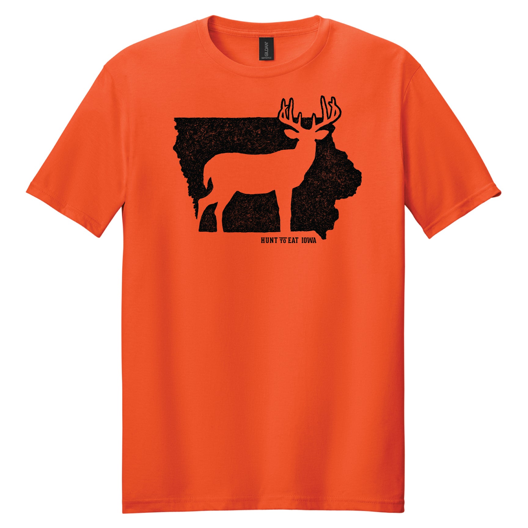 Rep the state of Iowa and your love of whitetail deer hunting with this T-shirt. Available in four different colors; Military Green, Indigo, Orange, and Sport Grey.