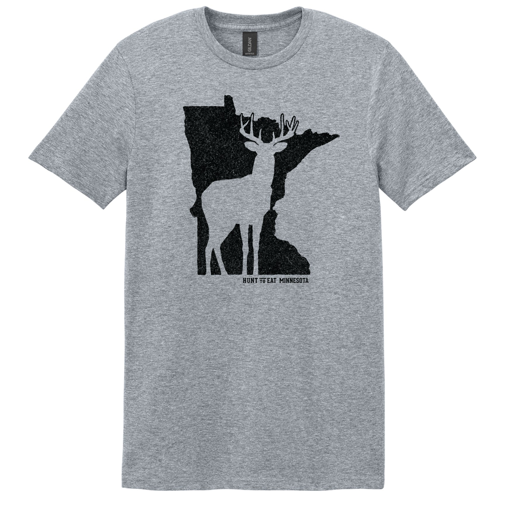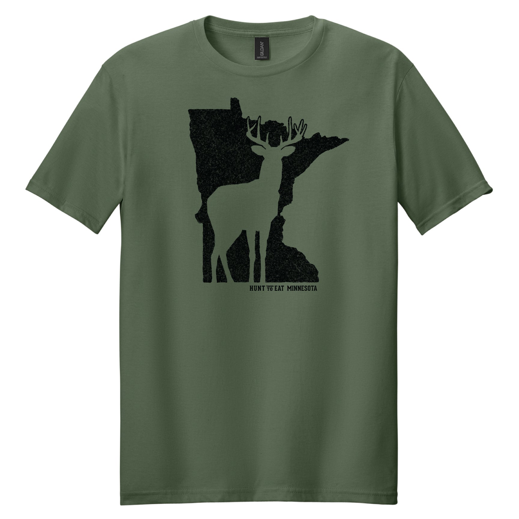 Rep the state of Minnesota and your love of whitetail deer hunting with this T-shirt. Available in four different colors; Military Green, Indigo, Orange, and Sport Grey.