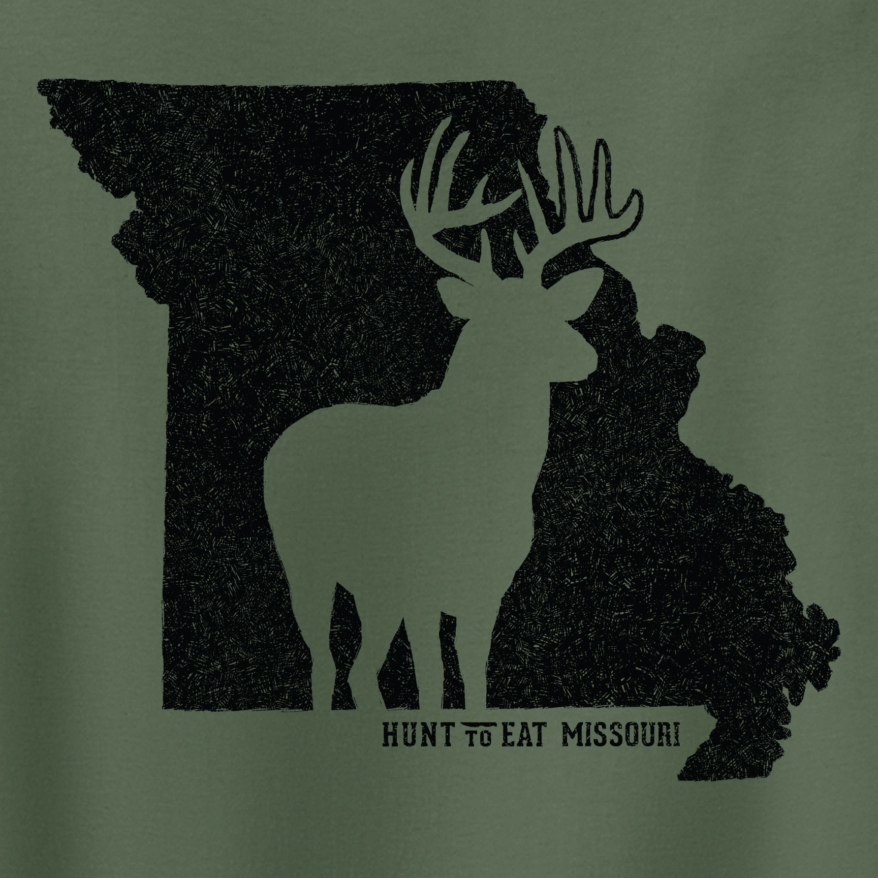 Rep the state of Missouri and your love of whitetail deer hunting with this T-shirt. Available in four different colors; Military Green, Indigo, Orange, and Sport Grey.