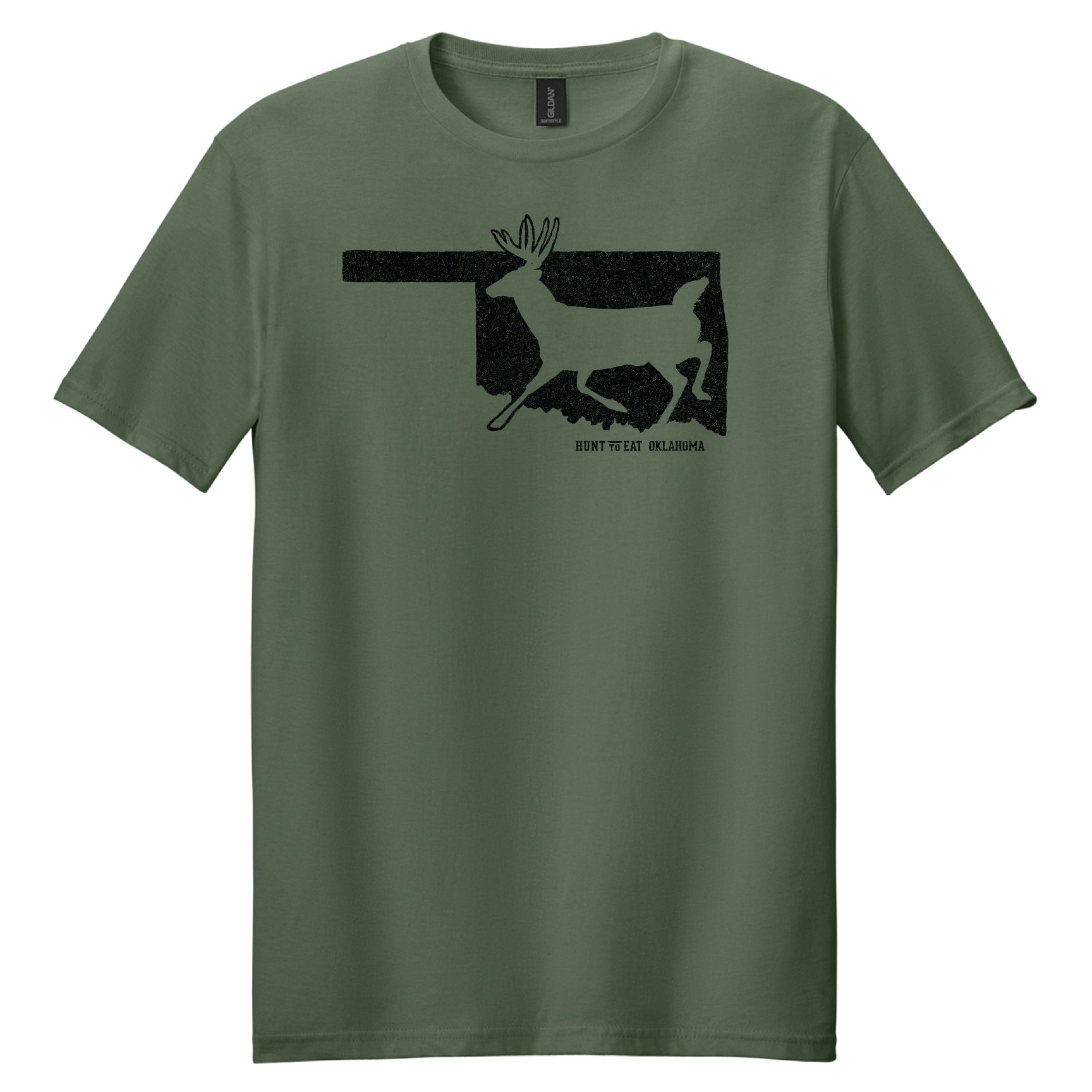 Rep the state of Oklahoma and your love of whitetail deer hunting with this T-shirt. Available in four different colors; Military Green, Indigo, Orange, and Sport Grey.