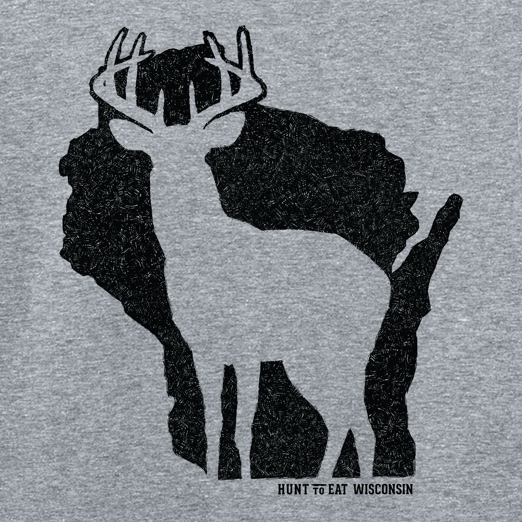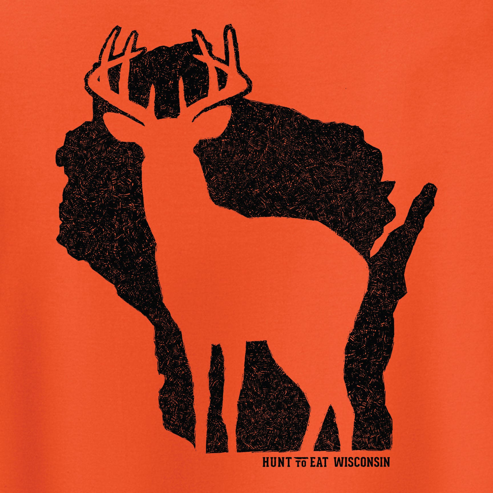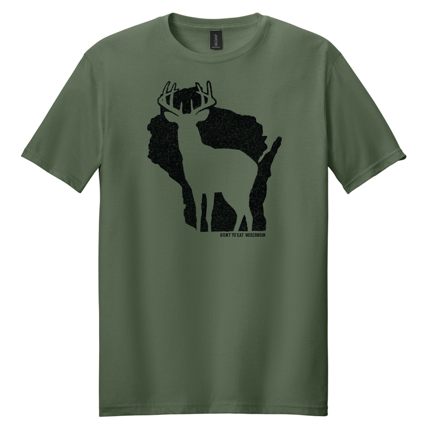 Rep the state of Wisconsin and your love of whitetail deer hunting with this T-shirt. Available in four different colors; Military Green, Indigo, Orange, and Sport Grey.